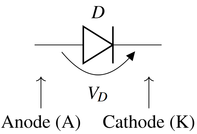 Forward voltage drop: \(V_F \approx 0.7\)–\(1.5\) V